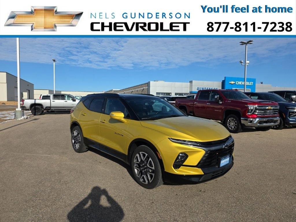 Discover the exceptional 2023 Chevrolet Blazer RS, a standout SUV that blends style, performance, and advanced technology. This striking Nitro Yellow Metallic Blazer RS is a true head-turner, with its bold two-tone black roof and sleek, sporty design.