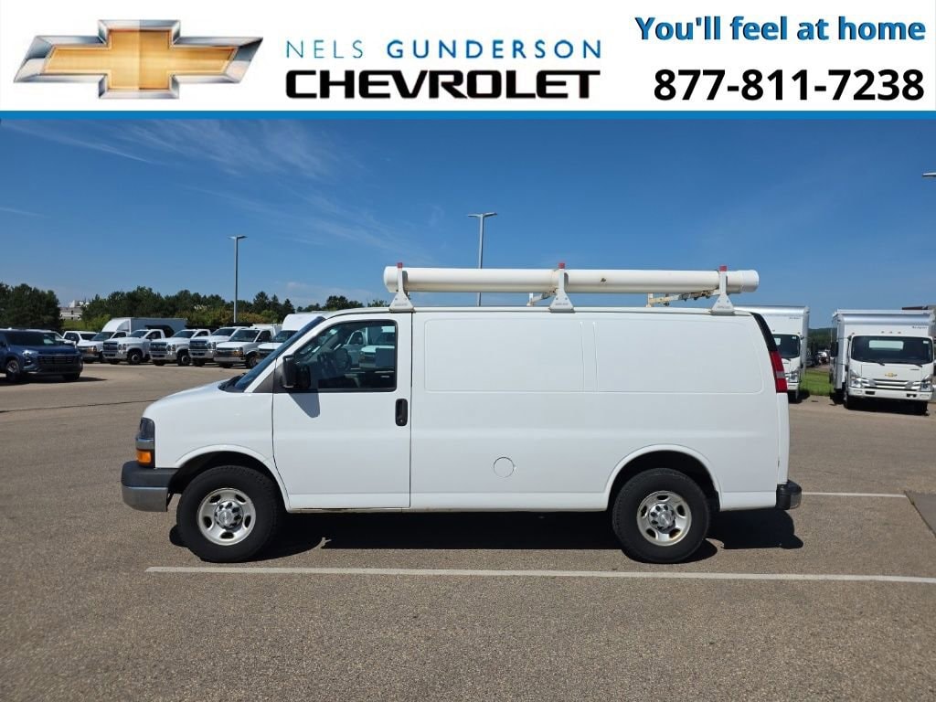 Nels Gunderson Chevrolet is pleased to offer this superb-looking 2016 Chevrolet Express 3500 Work Van in Summit White, beautifully equipped with Chrome Appearance Package (Chrome Grille, Dual Composite Halogen Headlamps, and Front & Rear Chrome Bumpers w/Step-Pad), Convenience Package (Cruise Control and Tilt Steering Wheel), Heavy-Duty Trailering Equipment (7-Pin Sealed Connector Trailer Wiring), Preferred Equipment Group 1WT, 16 x 6.5 Steel Wheels, 2 Speakers, 3.42 Rear Axle Ratio, 4-Wheel Disc Brakes, ABS brakes, Air Conditioning, AM/FM radio, AM/FM Stereo w/MP3 Player, Black Heated Power-Adjustable Outside Mirrors, Delay-off headlights, Driver & Front Passenger Airbags, Driver & Front Passenger Vinyl Visors, Driver & Right-Front Passenger Air Bags, Driver door bin, Driver's Seat Mounted Armrest, Dual front impact airbags, Dual front side impact airbags, Electronic Stability Control, Engine Cover Console w/Swing-Out Storage Bin (DISC), Front anti-roll bar, Front Bucket Seats, Front wheel independent suspension, Fully automatic headlights, Heavy-Duty Rear Locking Differential, Inside Rearview Mirror w/Rr Vision Camera Display, Low tire pressure warning, Occupant sensing airbag, Overhead airbag, Passenger cancellable airbag, Passenger door bin, Passenger seat mounted armrest, Power steering, Power windows, Radio: AM/FM Stereo w/MP3 Player & USB Port, Rear Vision Camera, Reclining Front High-Back Bucket Seats, Remote Keyless Entry, Tachometer, Traction control, Trip computer, USB Port Audio System Feature, Variably intermittent wipers, Vinyl Seat Trim, and Voltmeter. Odometer is 54259 miles below market average!
