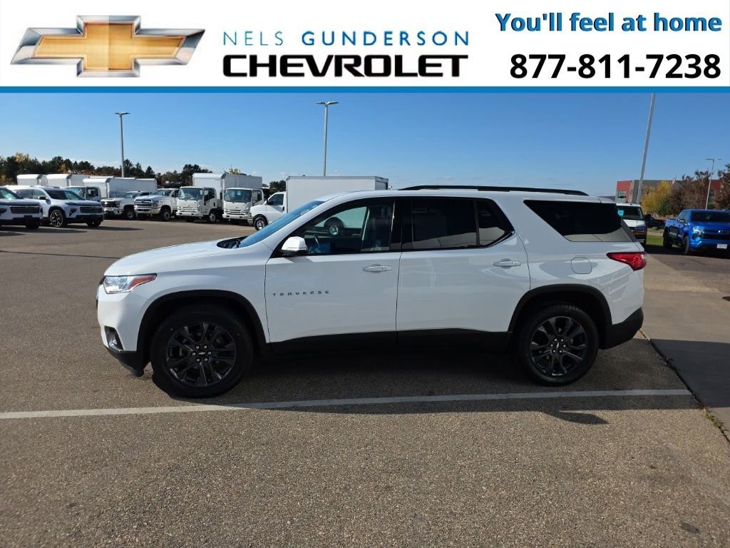 Nels Gunderson Chevrolet is delighted to offer this good-looking 2019 Chevrolet Traverse RS in Summit White, beautifully equipped with Floor Liner Package (LPO) (1st & 2nd Row All-Weather Floor Liner (LPO), 3rd Row All-Weather Floor Liner (LPO), and Integrated Cargo Liner (LPO)), Preferred Equipment Group 2LT, Trailering Equipment (Heavy-Duty Cooling System), AWD, 10 Speakers, 3.49 Axle Ratio, 3rd row seats: split-bench, 4-Wheel Disc Brakes, 7-Passenger Seating (2-2-3 Seating Configuration), ABS brakes, Air Conditioning, Alloy wheels, AM/FM radio: SiriusXM, Apple CarPlay/Android Auto, Auto-dimming door mirrors, Auto-dimming Rear-View mirror, Automatic temperature control, Bose Premium 10-Speaker Audio System Feature, Brake assist, Bumpers: body-color, Compass, Delay-off headlights, Driver door bin, Driver vanity mirror, Dual front impact airbags, Dual front side impact airbags, Dual SkyScape 2-Panel Power Sunroof, Electronic Stability Control, Emergency communication system, Four wheel independent suspension, Front anti-roll bar, Front Bucket Seats, Front Center Armrest, Front dual zone A/C, Front fog lights, Front reading lights, Fully automatic headlights, Garage door transmitter, Heated door mirrors, Heated front seats, High-Intensity Discharge Headlights, Illuminated entry, Leather-Appointed Seat Trim, Low tire pressure warning, Navigation System, Occupant sensing airbag, Outside temperature display, Overhead airbag, Overhead console, Panic alarm, Passenger door bin, Passenger vanity mirror, Power door mirrors, Power driver seat, Power Liftgate, Power passenger seat, Power steering, Power windows, Premium audio system: Chevrolet MyLink, Radio data system, Radio: Chevrolet Infotainment AM/FM Stereo w/Navigation, Rear air conditioning, Rear anti-roll bar, Rear reading lights, Rear window defroster, Rear window wiper, Remote keyless entry, Roof rack: rails only, Security system, SiriusXM Radio, Speed control, Speed-sensing steering, Spoiler, Steering wheel mounted audio controls, Tachometer, Telescoping steering wheel, Tilt steering wheel, Traction control, Trip computer, Turn signal indicator mirrors, Variably intermittent wipers, Voltmeter, and Wheels: 20 Dark Android Painted Aluminum. AWD.Awards:* 2019 KBB.com 12 Best Family Cars 2019 Chevrolet Traverse RS 2LT You'll Feel at Home!! www.osseoauto.com.