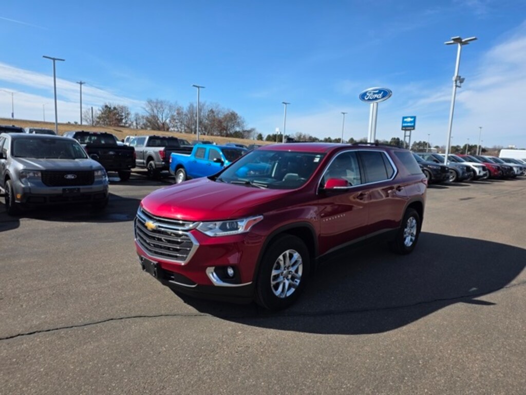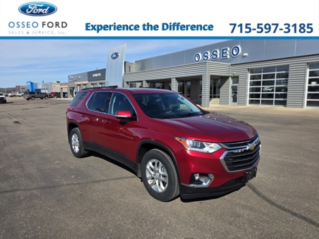 Osseo Ford is pumped up to offer this great 2020 Chevrolet Traverse LT in Cajun Red Tintcoat, beautifully equipped with Driver Confidence II Package (Automatic Emergency Braking, Automatic Heated Steering Wheel, Following Distance Indicator, Forward Collision Alert, Front Pedestrian Braking, IntelliBeam Auto High Beam Control Headlamps, and Lane Keep Assist w/Lane Departure Warning), Floor Liner Package (LPO) (1st & 2nd Row All-Weather Floor Liner (LPO), 3rd Row All-Weather Floor Liner (LPO), and Integrated Cargo Liner (LPO)), Front License Plate Bracket Mounting Package, Preferred Equipment Group 1LT, Trailering Equipment (Heavy-Duty Cooling System, Hitch Guidance w/Hitch View, and Trailering Assist Guidelines), AWD, 3.49 Axle Ratio, 3rd row seats: split-bench, 4-Wheel Disc Brakes, 6 Speakers, 7-Passenger Seating (2-2-3 Seating Configuration), ABS brakes, Air Conditioning, Alloy wheels, AM/FM radio: SiriusXM, Apple CarPlay/Android Auto, Automatic temperature control, Brake assist, Bumpers: body-color, Compass, Custom Molded Front & Rear Splash Guards (LPO), Delay-off headlights, Driver door bin, Driver vanity mirror, Dual front impact airbags, Dual front side impact airbags, Electronic Stability Control, Emergency communication system: OnStar and Chevrolet connected services capable, Four wheel independent suspension, Front anti-roll bar, Front Bucket Seats, Front Center Armrest, Front dual zone A/C, Front fog lights, Front reading lights, Fully automatic headlights, Garage door transmitter, Heated door mirrors, Heated front seats, High-Intensity Discharge Headlights, Illuminated entry, Leather steering wheel, Low tire pressure warning, Occupant sensing airbag, Outside temperature display, Overhead airbag, Overhead console, Panic alarm, Passenger door bin, Passenger vanity mirror, Power door mirrors, Power driver seat, Power Liftgate, Power steering, Power windows, Premium Cloth Seat Trim, Radio data system, Radio: Chevrolet Infotainment 3 Plus System, Rear air conditioning, Rear anti-roll bar, Rear reading lights, Rear window defroster, Rear window wiper, Remote keyless entry, Roof rack: rails only, Security system, SiriusXM w/360L, Speed control, Speed-sensing steering, Spoiler, Steering wheel mounted audio controls, Tachometer, Telescoping steering wheel, Tilt steering wheel, Traction control, Trip computer, Turn signal indicator mirrors, Variably intermittent wipers, Voltmeter, and Wheels: 18" Bright Silver Painted Aluminum! CLEAN AUTO CHECK, ONE OWNER, LOCAL TRADE, AWD / 4X4 / 4WD, AWD, 1st & 2nd Row All-Weather Floor Liner (LPO), 3rd Row All-Weather Floor Liner (LPO), Automatic Emergency Braking, Automatic Heated Steering Wheel, Driver Confidence II Package, Floor Liner Package (LPO), Following Distance Indicator, Forward Collision Alert, Front License Plate Bracket Mounting Package, Front Pedestrian Braking, Heavy-Duty Cooling System, Hitch Guidance w/Hitch View, Integrated Cargo Liner (LPO), IntelliBeam Auto High Beam Control Headlamps, Lane Keep Assist w/Lane Departure Warning, Preferred Equipment Group 1LT, Trailering Assist Guidelines, Trailering Equipment. Recent Arrival!