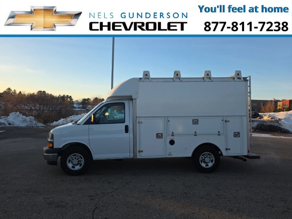 Nels Gunderson Chevrolet is delighted to offer this good-looking 2021 Chevrolet Express 3500 Work Van in Summit White, beautifully equipped with Chrome Appearance Package (Chrome Grille and Front Chrome Bumper w/Step-Pad), Driver Convenience Package (Tilt Steering Wheel), Power Convenience Package (Power Door Locks w/Lock-Out Protection and Power Windows), Preferred Equipment Group 1WT, 2 Speakers, 3.42 Rear Axle Ratio, 4-Wheel Disc Brakes, ABS brakes, Air Conditioning, AM/FM radio, Antenna Equipment, Black Outside Manual-Folding Dual Pane Mirrors, Bluetooth® For Phone, Body Soft-Mount Donut & Bolt, Cruise Control, Delay-off headlights, Driver & Front Passenger High-Back Bucket Seats, Driver door bin, Driver's Seat Mounted Armrest, Dual front impact airbags, Dual front side impact airbags, Electronic Stability Control, Emergency communication system: OnStar and Chevrolet connected services capable, Engine Cover Console w/Swing-Out Storage Bin, Front anti-roll bar, Front Bucket Seats, Front wheel independent suspension, Fully automatic headlights, Heavy-Duty Locking Rear Differential, Inside Rearview Mirror w/Rr Vision Camera Display, Leather-Wrapped Steering Wheel, Low tire pressure warning, Occupant sensing airbag, Overhead airbag, Passenger cancellable airbag, Passenger door bin, Passenger seat mounted armrest, Power steering, Radio: AM/FM Stereo w/MP3 Player & Digital Clock, Reclining High-Back Bucket Seats w/Inboard Armrests, Remote Keyless Entry, Single Rear Wheel Configuration, SiriusXM Radio, Steering Wheel Mounted Audio Controls, Tachometer, Theft Alarm Notification, Traction control, Trip computer, USB Port, Variably intermittent wipers, Vinyl Seat Trim, Voltmeter, and Wheels: 16 x 6.5 8-Lug Painted Steel HD (4)2021 Chevrolet Express 3500 Work Van Cutaway You'll Feel at Home!! www.osseoauto.com.