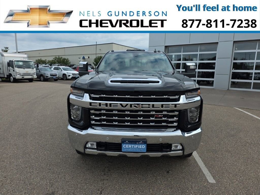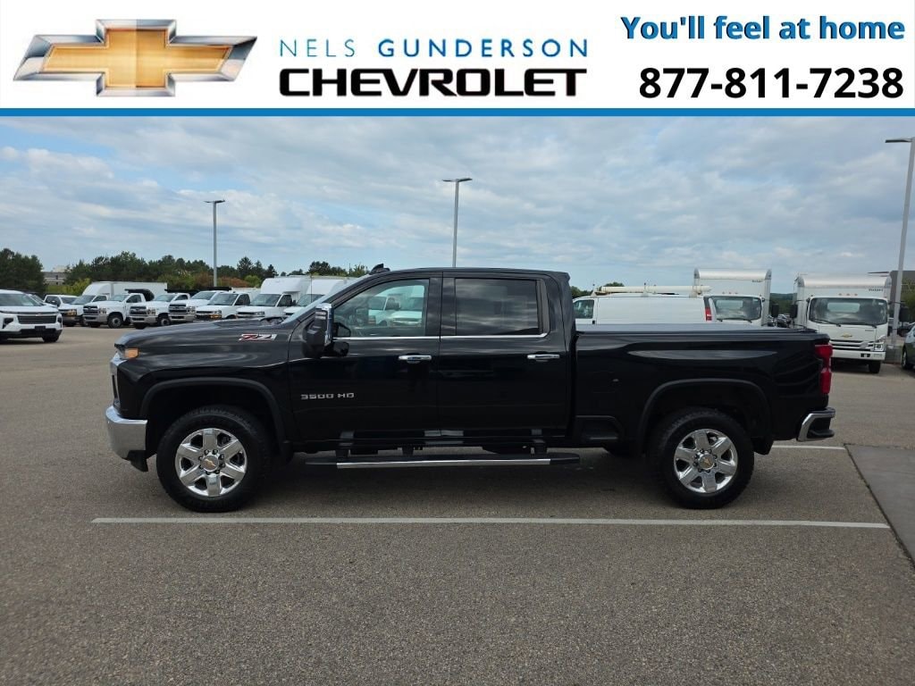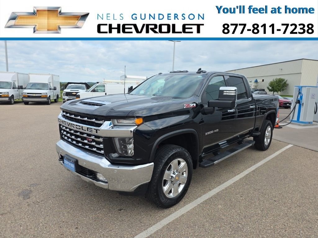 Nels Gunderson Chevrolet is proud to offer this trusty 2021 Chevrolet Silverado 3500HD LTZ in Black, beautifully equipped with LTZ Convenience Package (2 USB Ports (First Row), 2nd Row Heated Outboard Seats, Floor-Mounted Center Console, Front Bucket Seats, LED Cargo Area Lighting, Power Sliding Rear Window w/Defogger, Power Tailgate, Universal Home Remote, and Ventilated Driver & Front Passenger Seats), LTZ Convenience Package II (6-Speaker Audio System Feature, Bose Premium 7 Speaker Sound System, HD Radio, HD Surround Vision w/2 Trailer View Camera Provisions, Hitch Guidance w/Hitch View, Radio: Chevrolet Infotainment 3 Premium System, SiriusXM w/360L, and Wireless Charging), LTZ Premium Package (Wheels: 20 6-Spoke Polished Aluminum), Preferred Equipment Group 1LZ (12-Volt Rear Auxiliary Power Outlet, 120-Volt Bed Mounted Power Outlet, 120-Volt Instrument Panel Power Outlet, 170 Amp Alternator, 2-Speed Active Transfer Case, 2nd Row Dual USB Charge-Only Ports, 4.2 Diagonal Color Display Driver Info Center, 4G LTE Wi-Fi Hotspot Capable, Advanced Trailering System, Auto-Dimming Inside Rear-View Mirror, Bluetooth® For Phone, Chevrolet Connected Access Capable, Chrome Front Grille Bar w/Chrome Grille Inserts, Chrome Mirror Caps, Color-Keyed Carpeting Floor Covering, Compass Located In Instrument Cluster, Deep-Tinted Glass, Electric Rear-Window Defogger, Electrical Lock Control Steering Column, EZ Lift Power Lock & Release Tailgate, Front LED Fog Lamps, Front Rubberized Vinyl Floor Mats, HD Rear Vision Camera, Heated Steering Wheel, Integrated Trailer Brake Controller, Keyless Open & Start, Leather-Wrapped Steering Wheel, Manual Tilt/Telescoping Steering Column, OnStar & Chevrolet Connected Services Capable, Power Door Locks, Power Front Passenger Windows w/Express Up/Down, Power Front Windows w/Driver Express Up/Down, Power Rear Windows w/Express Down, Power-Adjustable Outside Mirrors, Rear Rubberized-Vinyl Floor Mats, Rear Wheelhouse Liners, Remote Vehicle Starter System, Steering Wheel Audio Controls, Steering Wheel Mounted Electronic Cruise Control, Unauthorized Entry Theft-Deterrent System, and Wireless Phone Projection), Safety Package (Lane Change Alert w/Side Blind Zone Alert, Rear Cross Traffic Alert, and Ultrasonic Front & Rear Park Assist), Safety Package II (Automatic Emergency Braking, Following Distance Indicator, Forward Collision Alert, IntelliBeam Automatic High Beam On/Off, Lane Departure Warning System, and Safety Alert Seat), Snow Plow Prep/Camper Package, Suspension Package, Technology Package (8 Driver Information Center, Auto-Dimming Inside Rearview Mirror w/Camera, and Multicolor 15 Diagonal Head-Up Display), Up-Level Rear Seat w/Storage Package, Z71 Off-Road & Protection Package (All-Weather Floor Liners (LPO) (AAK) and Chevytec Spray-On Black Bedliner w/Chevrolet Logo), Z71 Off-Road Package (Hill Descent Control), 6-Speed Automatic, 4WD, Jet Black Leather, 10-Way Power Driver Seat Adjuster w/Lumbar, 10-Way Power Passenger Seat Adjuster w/Lumbar, 220 Amp Alternator, 3.73 Rear Axle Ratio, 4-Wheel Disc Brakes, 6 Speakers, 730 Cold-Cranking Amps/70 Amp-hr Auxiliary Battery, ABS brakes, Air Conditioning, Alloy wheels, AM/FM radio: SiriusXM with 360L, Apple CarPlay/Android Auto, Auto-dimming door mirrors, Auto-dimming Rear-View mirror, Automatic temperature control, Bed View Camera w/2 Trailer Camera Provisions (DISC), Brake assist, Bumpers: chrome, Compass, Delay-off headlights, Driver door bin, Driver Memory, Driver vanity mirror, Dual front impact airbags, Dual front side impact airbags, Durabed Pickup Bed, Electronic Stability Control, Engine Block Heater, Front 40/20/40 Split-Bench Seat w/Storage, Front anti-roll bar, Front Center Armrest w/Storage, Front dual zone A/C, Front fog lights, Front License Plate Kit, Front reading lights, Front wheel independent suspension, Fully automatic headlights, Heated door mirrors, Heated Driver & Front Outboard Passenger Seats, Heated front seats, Heated steering