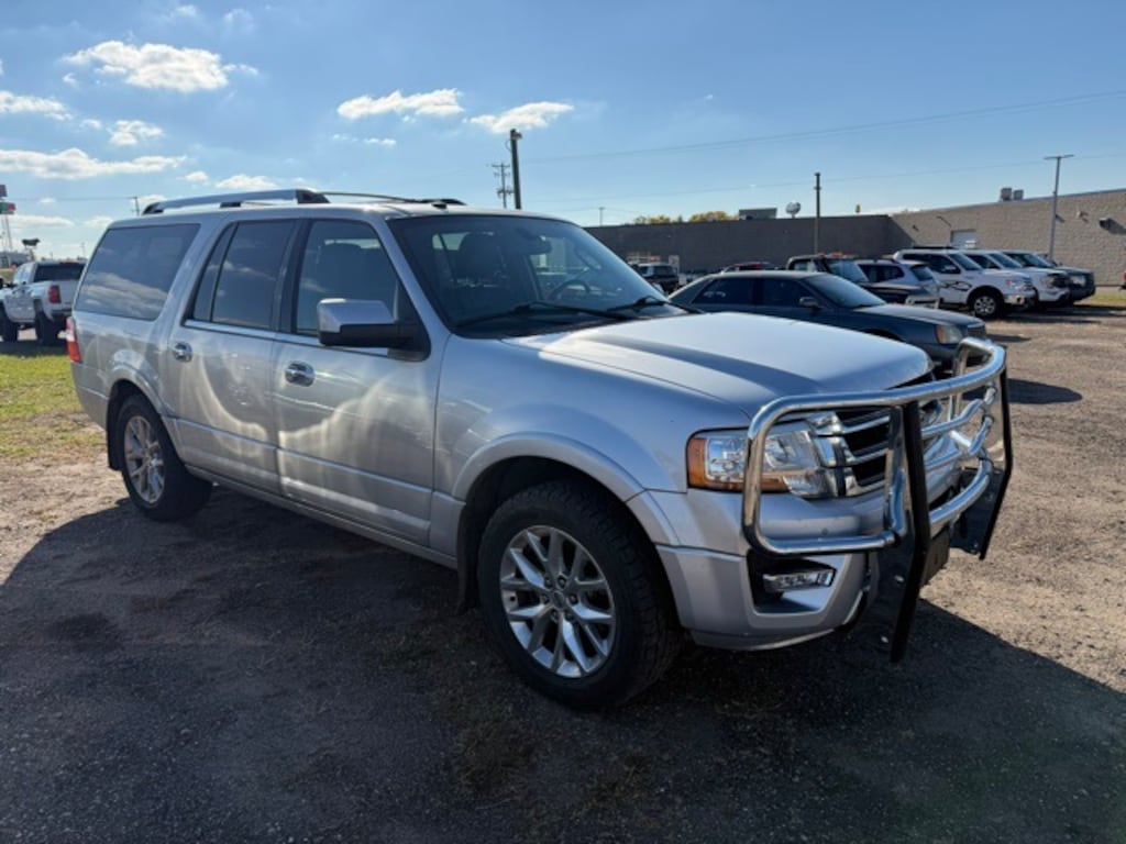Osseo Ford is pleased to offer this great 2016 Ford Expedition EL Limited in Ingot Silver, beautifully equipped with Equipment Group 301A (Power Deployable Running Boards, Power Moonroof, and Voice-Activated Touch Screen Navigation System), GVWR: 7,720 lbs Payload Package, 4WD, 20" Polished Aluminum Wheels, 2nd Row Bucket Seats, Power Liftgate, 12 Speakers, 3rd row seats: split-bench, 4-Wheel Disc Brakes, ABS brakes, Adjustable pedals, Air Conditioning, Alloy wheels, AM/FM radio: SiriusXM, Auto-dimming door mirrors, Auto-dimming Rear-View mirror, Automatic temperature control, Brake assist, Bumpers: body-color, CD player, Compass, Delay-off headlights, Driver door bin, Driver vanity mirror, Dual front impact airbags, Dual front side impact airbags, Electronic Stability Control, Emergency communication system: 911 Assist, Exterior Parking Camera Rear, Four wheel independent suspension, Front anti-roll bar, Front Bucket Seats, Front Center Armrest, Front dual zone A/C, Front fog lights, Front reading lights, Fully automatic headlights, Garage door transmitter, Heated & Cooled Perforated Leather Fr Bucket Seats, Heated door mirrors, Heated front seats, Heated rear seats, Illuminated entry, Leather Shift Knob, Leather steering wheel, Limited Slip w/3.73 Axle Ratio, Low tire pressure warning, Memory seat, Occupant sensing airbag, Outside temperature display, Overhead airbag, Overhead console, Panic alarm, Passenger door bin, Passenger vanity mirror, Pedal memory, Power door mirrors, Power driver seat, Power passenger seat, Power steering, Power windows, Radio data system, Radio: Premium Sony Sound System w/Single-Disc/MP3, Rain sensing wipers, Rear air conditioning, Rear anti-roll bar, Rear audio controls, Rear reading lights, Rear window defroster, Rear window wiper, Remote keyless entry, Roof rack, Security system, Speed control, Speed-sensing steering, Speed-Sensitive Wipers, Split folding rear seat, Steering wheel mounted audio controls, SYNC 3 Communications & Entertainment System, Tachometer, Telescoping steering wheel, Tilt steering wheel, Traction control, Trip computer, Turn signal indicator mirrors, Variably intermittent wipers, Ventilated front seats, and Voltmeter! 4WD, 20" Polished Aluminum Wheels, 2nd Row Bucket Seats, Equipment Group 301A, Power Deployable Running Boards, Power Liftgate, Power Moonroof, Voice-Activated Touch Screen Navigation System. Recent Arrival!