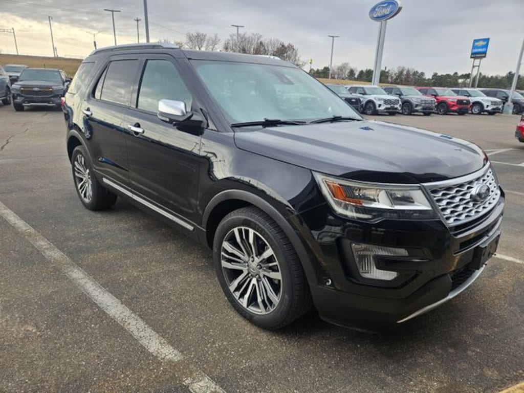 Osseo Ford is very proud to offer this wonderful-looking 2017 Ford Explorer Platinum in Shadow Black, beautifully equipped with Equipment Group 600A, 4WD, 12 Speakers, 3.16 Axle Ratio, 3rd row seats: split-bench, 4-Wheel Disc Brakes, ABS brakes, Adjustable pedals, Air Conditioning, Alloy wheels, AM/FM radio: SiriusXM, Auto High-beam Headlights, Auto tilt-away steering wheel, Auto-dimming door mirrors, Auto-dimming Rear-View mirror, Automatic temperature control, Brake assist, Bumpers: body-color, CD player, Compass, Delay-off headlights, Driver door bin, Driver vanity mirror, Dual front impact airbags, Dual front side impact airbags, Electronic Stability Control, Emergency communication system: SYNC 3 911 Assist, Exterior Parking Camera Rear, Four wheel independent suspension, Front & Rear Floor Liners, Front anti-roll bar, Front Bucket Seats, Front Center Armrest, Front dual zone A/C, Front fog lights, Front reading lights, Fully automatic headlights, Garage door transmitter, Genuine wood dashboard insert, Genuine wood door panel insert, Heated 2nd Row Bucket Seats w/Power-Assist Fold, Heated door mirrors, Heated front seats, Heated rear seats, Heated steering wheel, Illuminated entry, Knee airbag, Lane Departure Warning System, Leather steering wheel, Low tire pressure warning, Memory seat, Navigation System, Nirvana Multi Contour Leather Cooled Bucket Seats, Occupant sensing airbag, Outside temperature display, Overhead airbag, Overhead console, Panic alarm, Passenger door bin, Passenger vanity mirror, Pedal memory, Power door mirrors, Power driver seat, Power Liftgate, Power moonroof, Power passenger seat, Power steering, Power windows, Premium audio system: Sony, Radio data system, Radio: Premium Sound from Sony, Rain sensing wipers, Rear air conditioning, Rear anti-roll bar, Rear reading lights, Rear seat center armrest, Rear window defroster, Rear window wiper, Remote keyless entry, Roof rack: rails only, Security system, Speed control, Speed-sensing steering, Speed-Sensitive Wipers, Split folding rear seat, Spoiler, Steering wheel memory, Steering wheel mounted audio controls, SYNC 3 Communications & Entertainment System, Tachometer, Telescoping steering wheel, Tilt steering wheel, Traction control, Trip computer, Turn signal indicator mirrors, Variably intermittent wipers, Ventilated front seats, and Wheels: 20" Bright Machined Face Aluminum! 4WD. Recent Arrival! Priced below KBB Fair Purchase Price!
