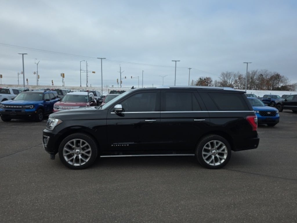 Osseo Ford is pumped up to offer this stunning 2019 Ford Expedition Platinum in Agate Black Metallic, beautifully equipped with Equipment Group 600A, Heavy-Duty Trailer Tow Package (Electronic Limited Slip w/3.73 Axle Ratio, Heavy-Duty Engine Radiator, Integrated Trailer Brake Controller, and Pro Trailer Backup Assist), 4WD, Navigation System, 12 Speakers, 22" Polished Aluminum Wheels, 2nd Row Bucket Seats, 3rd row seats: split-bench, 4-Wheel Disc Brakes, ABS brakes, Adaptive suspension, Adjustable pedals, Air Conditioning, Alloy wheels, AM/FM radio: SiriusXM, AppLink/Apple CarPlay and Android Auto, Auto High-beam Headlights, Auto-dimming door mirrors, Auto-dimming Rear-View mirror, Automatic temperature control, Brake assist, Bumpers: body-color, Compass, Delay-off headlights, Driver door bin, Driver vanity mirror, Dual front impact airbags, Dual front side impact airbags, Electronic Stability Control, Emergency communication system: SYNC 3 911 Assist, Exterior Parking Camera Rear, Four wheel independent suspension, Front anti-roll bar, Front Bucket Seats, Front Center Armrest, Front dual zone A/C, Front fog lights, Front reading lights, Fully automatic headlights, Garage door transmitter, Genuine wood console insert, Genuine wood dashboard insert, Genuine wood door panel insert, Heated & Cooled Perforated Leather Fr Bucket Seats, Heated door mirrors, Heated front seats, Heated rear seats, Heated steering wheel, Illuminated entry, Lane Departure Warning System, Leather steering wheel, Low tire pressure warning, Memory seat, Occupant sensing airbag, Outside temperature display, Overhead airbag, Overhead console, Panic alarm, Passenger door bin, Passenger vanity mirror, Pedal memory, Power door mirrors, Power driver seat, Power Liftgate, Power moonroof, Power passenger seat, Power steering, Power windows, Radio data system, Radio: B&O Sound System by Bang & Olufsen, Rain sensing wipers, Rear air conditioning, Rear anti-roll bar, Rear audio controls, Rear reading lights, Rear window defroster, Rear window wiper, Reclining 3rd row seat, Remote keyless entry, Roof rack, Security system, SiriusXM Satellite Radio, Speed control, Speed-sensing steering, Speed-Sensitive Wipers, Split folding rear seat, Steering wheel mounted audio controls, SYNC 3 Communications & Entertainment System, Tachometer, Telescoping steering wheel, Tilt steering wheel, Traction control, Trip computer, Turn signal indicator mirrors, Variably intermittent wipers, Ventilated front seats, and Voltmeter! 4WD, Electronic Limited Slip w/3.73 Axle Ratio, Equipment Group 600A, Heavy-Duty Engine Radiator, Heavy-Duty Trailer Tow Package, Integrated Trailer Brake Controller, Navigation System, Pro Trailer Backup Assist. Priced below KBB Fair Purchase Price! Odometer is 19833 miles below market average!