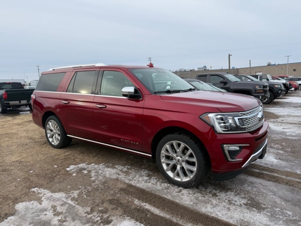 Osseo Ford is very proud to offer this fantastic 2019 Ford Expedition Max Platinum in Ruby Red, beautifully equipped with Equipment Group 600A, Heavy-Duty Trailer Tow Package (Heavy-Duty Engine Radiator, Integrated Trailer Brake Controller, and Pro Trailer Backup Assist), 12 Speakers, 1st & 2nd Row Floor Liners, 22" Polished Aluminum Wheels, 2nd Row Bucket Seats, 3rd row seats: split-bench, 4-Wheel Disc Brakes, ABS brakes, Adaptive suspension, Adjustable pedals, Air Conditioning, Alloy wheels, AM/FM radio: SiriusXM, AppLink/Apple CarPlay and Android Auto, Auto High-beam Headlights, Auto-dimming door mirrors, Auto-dimming Rear-View mirror, Automatic temperature control, Brake assist, Bumpers: body-color, Compass, Delay-off headlights, Driver door bin, Driver vanity mirror, Dual front impact airbags, Dual front side impact airbags, Electronic Stability Control, Emergency communication system: SYNC 3 911 Assist, Exterior Parking Camera Rear, Four wheel independent suspension, Front anti-roll bar, Front Bucket Seats, Front Center Armrest, Front dual zone A/C, Front fog lights, Front reading lights, Fully automatic headlights, Garage door transmitter, Genuine wood console insert, Genuine wood dashboard insert, Genuine wood door panel insert, Heated & Cooled Perforated Leather Fr Bucket Seats, Heated door mirrors, Heated front seats, Heated rear seats, Heated steering wheel, Illuminated entry, Lane Departure Warning System, Leather steering wheel, Low tire pressure warning, Memory seat, Navigation System, Occupant sensing airbag, Outside temperature display, Overhead airbag, Overhead console, Panic alarm, Passenger door bin, Passenger vanity mirror, Pedal memory, Power door mirrors, Power driver seat, Power Liftgate, Power moonroof, Power passenger seat, Power steering, Power windows, Radio data system, Radio: B&O Sound System by Bang & Olufsen, Rain sensing wipers, Rear air conditioning, Rear anti-roll bar, Rear audio controls, Rear reading lights, Rear window defroster, Rear window wiper, Reclining 3rd row seat, Remote keyless entry, Reversible Cargo Mat, Roof rack, Security system, SiriusXM Satellite Radio, Speed control, Speed-sensing steering, Speed-Sensitive Wipers, Split folding rear seat, Steering wheel memory, Steering wheel mounted audio controls, SYNC 3 Communications & Entertainment System, Tachometer, Telescoping steering wheel, Tilt steering wheel, Traction control, Trip computer, Turn signal indicator mirrors, Variably intermittent wipers, Ventilated front seats, and Voltmeter! Recent Arrival!