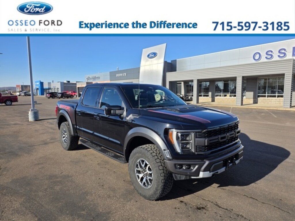 Osseo Ford is pleased to offer this trusty 2021 Ford F-150 Raptor in Agate Black Metallic, beautifully equipped with Convenience Package (Connected Built-In Navigation, Interior Work Surface, and Partitioned Lockable Fold-Flat Storage), Equipment Group 801A High (BlueCruise Prep Kit, Electronic Locking w/4.10 Axle Ratio, Forward Sensing System, Heated Steering Wheel, Leather Trim Seats w/Heated 2nd Row, LED Projector w/Dynamic Bending Headlamps, Power Tilt/Telescoping Steering Column w/Memory, Radio: B&O Unleashed Sound System by Bang & Olufsen, Rain-Sensing Wipers, SYNC 4 w/Enhanced Voice Recognition, Tailgate Applique FORD, Universal Garage Door Opener, and Wireless Charging Pad), Raptor Carbon Fiber Package, Raptor Exterior Graphics Package, Torsen Package (Front-Axle w/Torsen Differential and Rigid LED Fog Lamp), Tow Technology Package (360 Degree Camera, Integrated Trailer Brake Controller, and Pro Trailer Backup Assist), GVWR: 7,050 lbs Payload Package, 4WD, 17" Cast Aluminum Wheels, 4-Wheel Disc Brakes, 7 Speakers, ABS brakes, Adaptive suspension, Adjustable pedals, Air Conditioning, Alloy wheels, AM/FM radio: SiriusXM with 360L, Auto High-beam Headlights, Auto-dimming door mirrors, Auto-dimming Rear-View mirror, Automatic temperature control, Brake assist, Bumpers: body-color, Compass, Delay-off headlights, Driver door bin, Driver vanity mirror, Dual front impact airbags, Dual front side impact airbags, Electronic Stability Control, Emergency communication system: SYNC 4 911 Assist, Engine Block Heater, Exterior Parking Camera Rear, Front anti-roll bar, Front Bucket Seats, Front Center Armrest, Front dual zone A/C, Front reading lights, Front wheel independent suspension, Fully automatic headlights, Heated door mirrors, Heated front seats, Illuminated entry, Leather Trim Seats, Low tire pressure warning, Memory seat, Navigation system: Connected Navigation (90-Day Trial), Occupant sensing airbag, Outside temperature display, Overhead airbag, Overhead console, Panic alarm, Passenger door bin, Passenger vanity mirror, Pedal memory, Power door mirrors, Power driver seat, Power passenger seat, Power steering, Power windows, Radio data system, Radio: AM/FM SiriusXM w/360L, Rear reading lights, Rear step bumper, Rear window defroster, Remote keyless entry, Security system, Speed control, Speed-sensing steering, Split folding rear seat, Steering wheel mounted audio controls, Tachometer, Telescoping steering wheel, Tilt steering wheel, Traction control, Trip computer, Turn signal indicator mirrors, Twin Panel Moonroof, Variably intermittent wipers, and Ventilated front seats! CLEAN AUTO CHECK, ONE OWNER, LOCAL TRADE, AWD / 4X4 / 4WD, BOUGHT HERE NEW, SERVICED HERE, New Rear Shocks, 4WD, 360 Degree Camera, BlueCruise Prep Kit, Connected Built-In Navigation, Convenience Package, Electronic Locking w/4.10 Axle Ratio, Equipment Group 801A High, Forward Sensing System, Front-Axle w/Torsen Differential, Heated Steering Wheel, Integrated Trailer Brake Controller, Interior Work Surface, Leather Trim Seats w/Heated 2nd Row, LED Projector w/Dynamic Bending Headlamps, Partitioned Lockable Fold-Flat Storage, Power Tilt/Telescoping Steering Column w/Memory, Pro Trailer Backup Assist, Radio: B&O Unleashed Sound System by Bang & Olufsen, Rain-Sensing Wipers, Raptor Carbon Fiber Package, Raptor Exterior Graphics Package, Rigid LED Fog Lamp, SYNC 4 w/Enhanced Voice Recognition, Tailgate Applique FORD, Torsen Package, Tow Technology Package, Universal Garage Door Opener, Wireless Charging Pad. Recent Arrival!