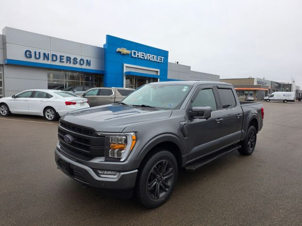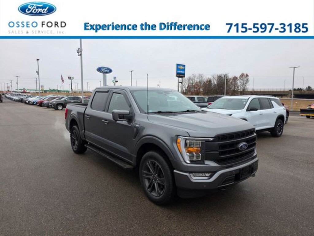 Osseo Ford is proud to offer this dependable 2021 Ford F-150 Lariat in Carbonized Gray Metallic, beautifully equipped with Equipment Group 501A Mid (Onboard 400W Outlet, Radio: B&O Sound System by Bang & Olufsen, and Universal Garage Door Opener), Ford Co-Pilot360 Assist 2.0 (Connected Built-In Navigation, Evasive Steering Assist, Intelligent Adaptive Cruise Control w/Stop & Go, Intersection Assist, and Speed Sign Recognition), Lariat Sport Appearance Package (Accent-Color Angular Step Bars, Body-Color Front & Rear Bumpers, Box Side Decals, Chrome Single-Tip Exhaust, Dark 2-Bar & 1 Minor Bar Style Grille, and Wheels: 18" 6-Spoke Machined Aluminum), Trailer Tow Package (Class IV Trailer Hitch Receiver, Integrated Trailer Brake Controller, and Pro Trailer Backup Assist), 4WD, 18" Machined-Aluminum Wheels, 3.31 Axle Ratio, 360 Degree Camera, 4-Wheel Disc Brakes, 7 Speakers, ABS brakes, Adjustable pedals, Air Conditioning, Alloy wheels, AM/FM radio: SiriusXM with 360L, Auto High-beam Headlights, Auto-dimming door mirrors, Auto-dimming Rear-View mirror, Automatic temperature control, Brake assist, Bumpers: chrome, Compass, Delay-off headlights, Driver door bin, Driver vanity mirror, Dual front impact airbags, Dual front side impact airbags, Electronic Stability Control, Emergency communication system: SYNC 4 911 Assist, Extended Range 36 Gallon Fuel Tank, Exterior Parking Camera Rear, Front anti-roll bar, Front Center Armrest w/Storage, Front dual zone A/C, Front fog lights, Front reading lights, Front wheel independent suspension, Fully automatic headlights, Heated door mirrors, Heated front seats, Illuminated entry, Leather-Trimmed 40/20/40 Front Seat, LED Sideview Mirror Spotlights, Low tire pressure warning, Memory seat, Navigation system: Connected Navigation (90-Day Trial), Occupant sensing airbag, Outside temperature display, Overhead airbag, Overhead console, Panic alarm, Passenger door bin, Passenger vanity mirror, Pedal memory, Power door mirrors, Power driver seat, Power passenger seat, Power steering, Power Tailgate, Power windows, Radio data system, Radio: AM/FM SiriusXM w/360L, Rear reading lights, Rear seat center armrest, Rear step bumper, Rear window defroster, Remote keyless entry, Security system, Speed control, Speed-sensing steering, Split folding rear seat, Steering wheel mounted audio controls, SYNC 4 w/Enhanced Voice Recognition, Tachometer, Telescoping steering wheel, Tilt steering wheel, Traction control, Tray Style Floor Liner (47W), Trip computer, Turn signal indicator mirrors, Twin Panel Moonroof, Variably intermittent wipers, Ventilated front seats, Voltmeter, and Wheels: 20" 6-Spoke Dark Alloy Painted Aluminum! 4WD. Recent Arrival!