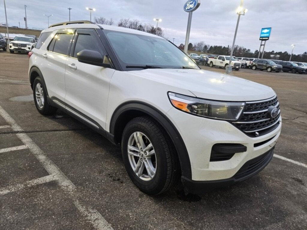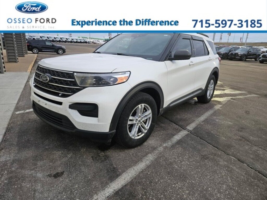 Osseo Ford is excited to offer this superb 2022 Ford Explorer XLT in White, beautifully equipped with Equipment Group 200A, 1st Row Heated Seats, 3.58 Non-Limited-Slip Rear Axle Ratio, 3rd row seats: bench, 4-Wheel Disc Brakes, 6 Speakers, ABS brakes, Air Conditioning, Alloy wheels, AM/FM radio: SiriusXM, AM/FM Stereo, Auto High-beam Headlights, Auto Start-Stop Removal, Automatic temperature control, Brake assist, Bumpers: body-color, Compass, Delay-off headlights, Driver door bin, Driver vanity mirror, Dual front impact airbags, Dual front side impact airbags, Electronic Stability Control, Emergency communication system: SYNC 3 911 Assist, Exterior Parking Camera Rear, FordPass Connect, Four wheel independent suspension, Front anti-roll bar, Front Bucket Seats, Front Center Armrest, Front dual zone A/C, Front reading lights, Fully automatic headlights, Heated door mirrors, Heated front seats, Illuminated entry, Knee airbag, Leather steering wheel, Low tire pressure warning, Occupant sensing airbag, Outside temperature display, Overhead airbag, Overhead console, Panic alarm, Passenger door bin, Passenger vanity mirror, Power door mirrors, Power driver seat, Power Liftgate, Power passenger seat, Power steering, Power windows, Rear air conditioning, Rear anti-roll bar, Rear reading lights, Rear window defroster, Rear window wiper, Remote keyless entry, Roof rack: rails only, Security system, Speed control, Speed-sensing steering, Speed-Sensitive Wipers, Split folding rear seat, Spoiler, Steering wheel mounted audio controls, SYNC 3 Communications & Entertainment System, SYNC 3/Apple CarPlay/Android Auto, Tachometer, Telescoping steering wheel, Tilt steering wheel, Traction control, Trip computer, Unique Cloth Captain's Chairs, Variably intermittent wipers, and Wheels: 18" 5-Spoke Silver-Painted Aluminum! Recent Arrival! 21/28 City/Highway MPG